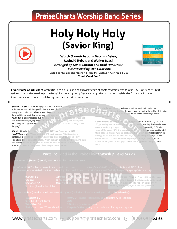 Download the Orchestration for Holy Holy Holy (Savior King) by Gateway Worship, from the album Great Great God. This song was arranged by Daniel Galbraith / Brad Henderson in the key of Bb, C.