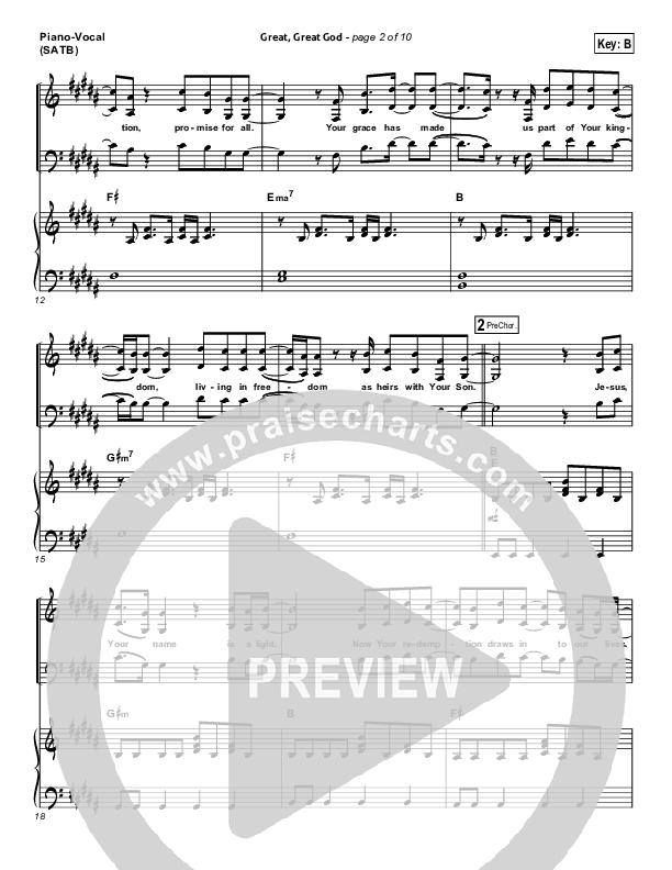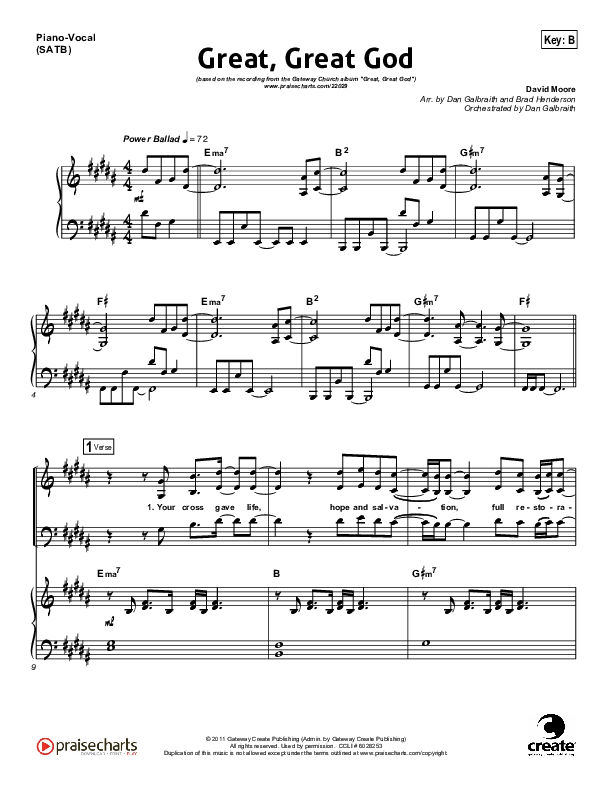 Download the sheet music for Great Great God by Gateway Worship, from the album Great Great God. This song was arranged by Daniel Galbraith / Brad Henderson in the key of B, Bb.