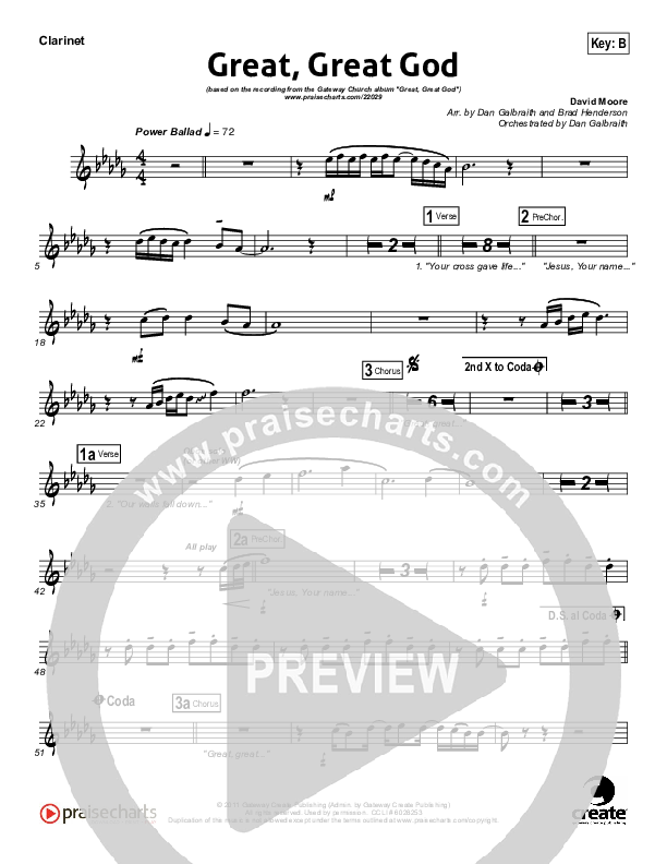 Download the Orchestration for Great Great God by Gateway Worship, from the album Great Great God. This song was arranged by Daniel Galbraith / Brad Henderson in the key of B, Bb.