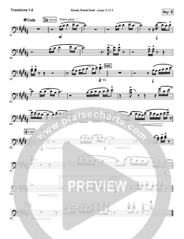Download the Trombone 1,2 sheet music for Great Great God by Gateway Worship, from the album Great Great God. This song was arranged by Daniel Galbraith / Brad Henderson in the key of B, Bb.