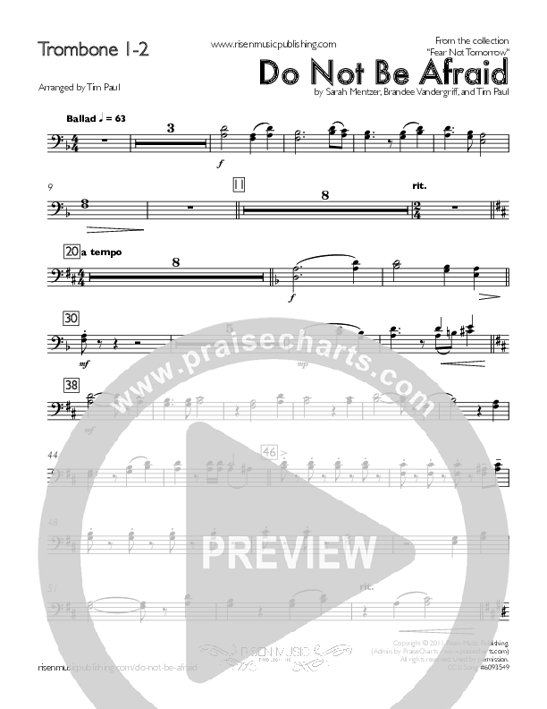 Download the Trombone 1,2 sheet music for Do Not Be Afraid by Concord Worship / Shane McConnell, from the album Fear Not Tomorrow.