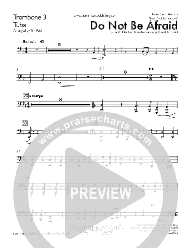 Download the Trombone 3/Tuba sheet music for Do Not Be Afraid by Concord Worship / Shane McConnell, from the album Fear Not Tomorrow.