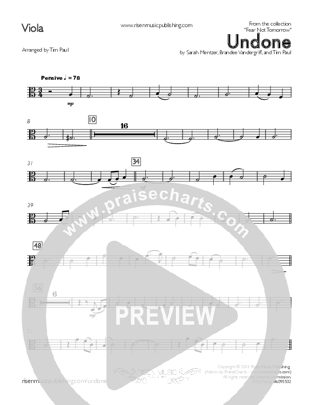 Download the Viola sheet music for Undone by Concord Worship / Julie Elias, from the album Fear Not Tomorrow.