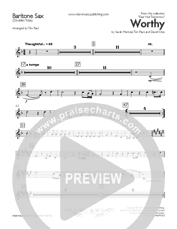 Download the Bari Sax sheet music for Worthy by Concord Worship / Destiny Rambo McGuire, from the album Fear Not Tomorrow.