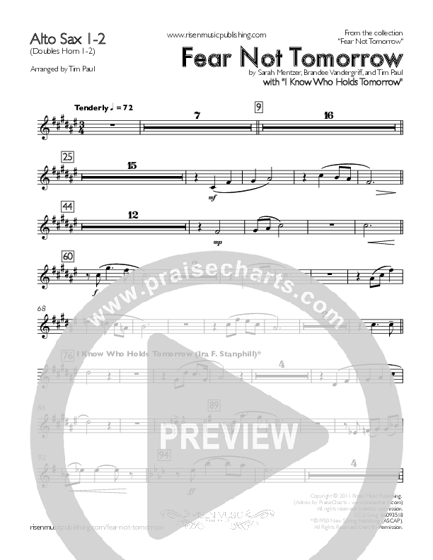 Fear Not Tomorrow Collection Alto Sax Sheet Music PDF (Concord Worship)