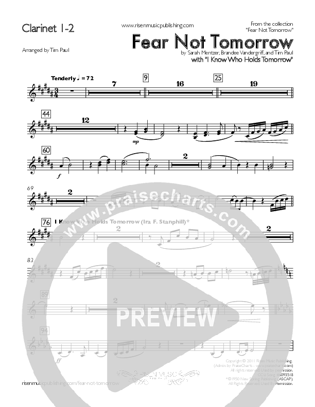 Fear Not Tomorrow Collection Clarinet Sheet Music PDF (Concord Worship)