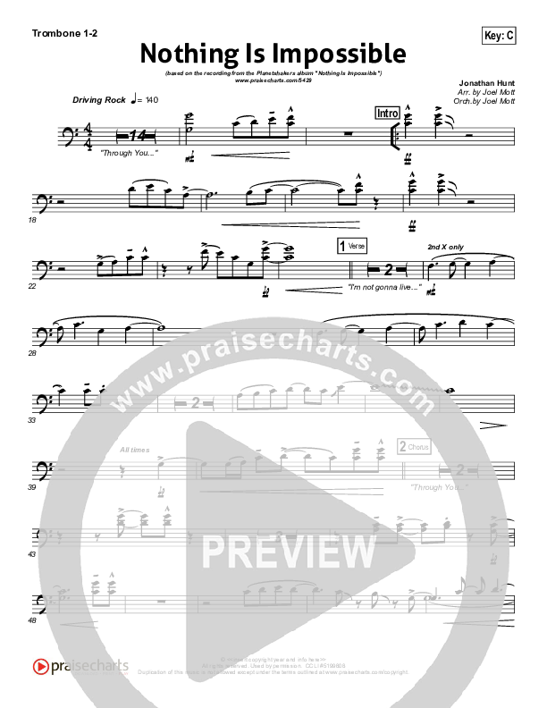 Download the Trombone 1,2 sheet music for Nothing Is Impossible by Planetshakers, from the album Nothing Is Impossible. This song was arranged by Joel Mott in the key of Bb, C.