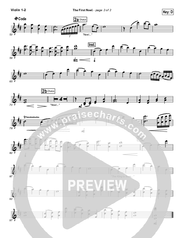 Download the Violin sheet music for The First Noel by Phil Wickham, from the album Songs For Christmas. This song was arranged by Daniel Galbraith / Brad Henderson in the key of C, D.