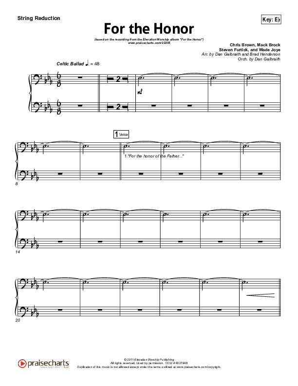 Download the Orchestration for For The Honor by Elevation Worship, from the album For The Honor. This song was arranged by Daniel Galbraith / Brad Henderson in the key of D, Eb.