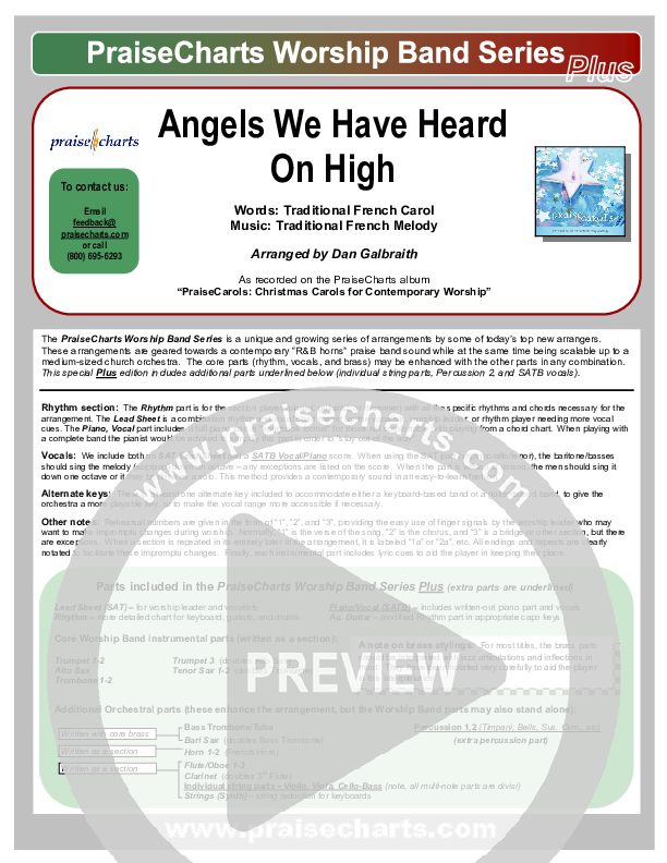 Angels We Have Heard On High Orchestration (PraiseCharts Band / Arr. Daniel Galbraith)
