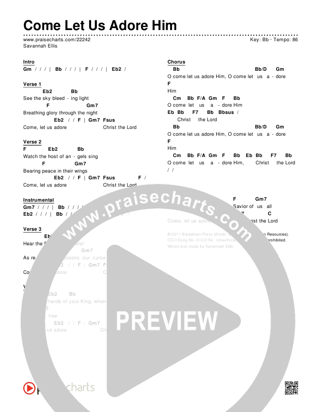 Come Let Us Adore Him Chords PDF (Savannah Ellis)