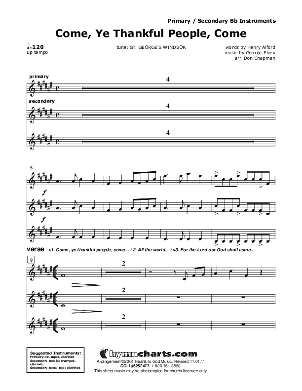 Download the Orchestration for Come Ye Thankful People Come by Don Chapman, from the album Grateful Heart Thanksgiving Set Starter. This song was arranged by Don Chapman in the key of E.