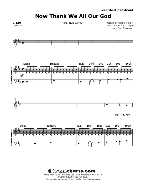 Download the sheet music for Now Thank We All Our God by Don Chapman, from the album Grateful Heart Thanksgiving Set Starter. This song was arranged by Don Chapman in the key of D.