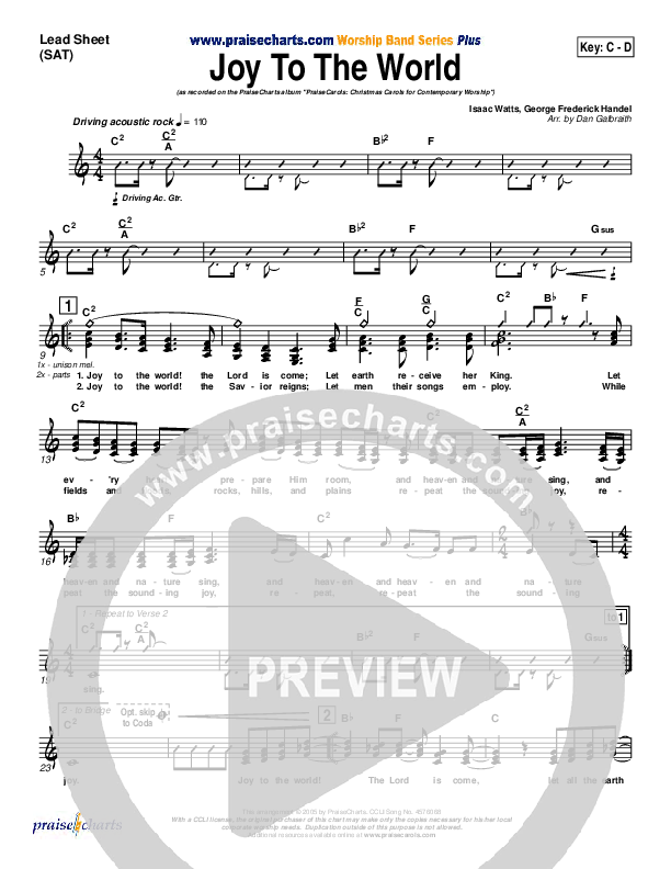 Joy To The World Sheet Music PDF (PraiseCharts Band / Arr. Daniel Galbraith)