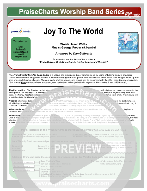 Joy To The World Orchestration (PraiseCharts Band / Arr. Daniel Galbraith)