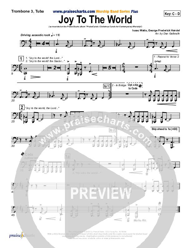 Download the Orchestration for Joy To The World by PraiseCharts Band / Arr. Daniel Galbraith, from the album PraiseCarols (Vol. 1). This song was arranged by Daniel Galbraith in the key of Bb, C.