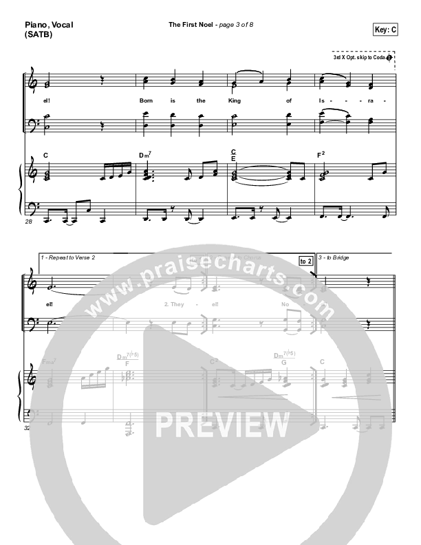 Download the sheet music for The First Noel by PraiseCharts Band / Arr. Daniel Galbraith, from the album PraiseCarols (Vol. 1). This song was arranged by Daniel Galbraith in the key of Bb, C.
