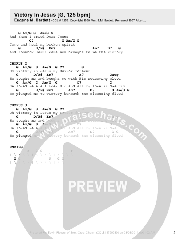 Victory In Jesus Chords PDF (Kevin Pledger)