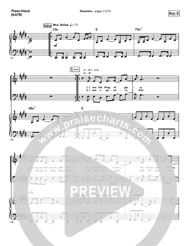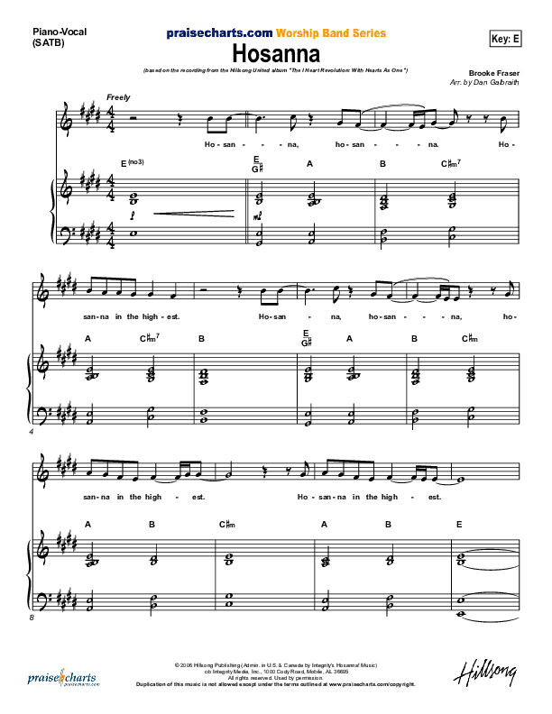 Download the sheet music for Hosanna (Choral Anthem SATB) by Hillsong Worship / NextGen Worship / Arr. Richard Kingsmore, from the album I Heart Revolution. This song was arranged by Richard Kingsmore in the key of D, E.
