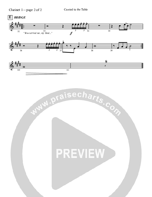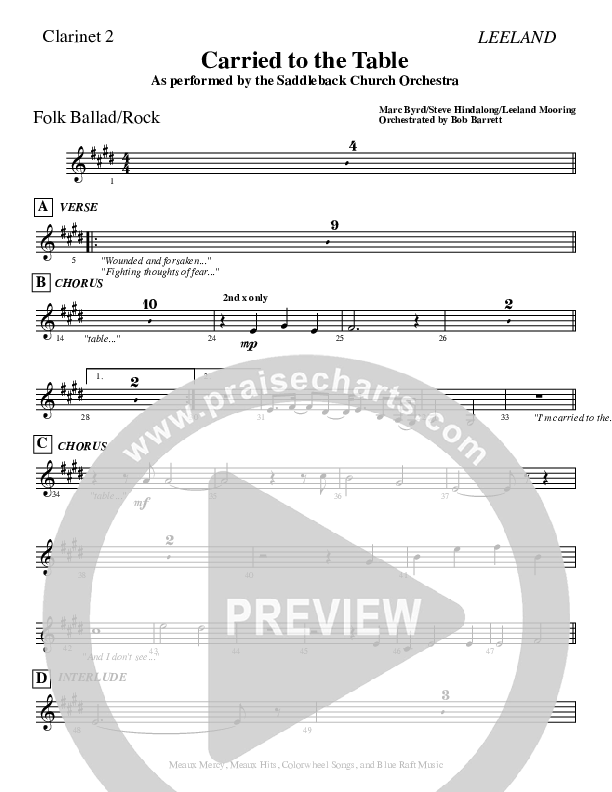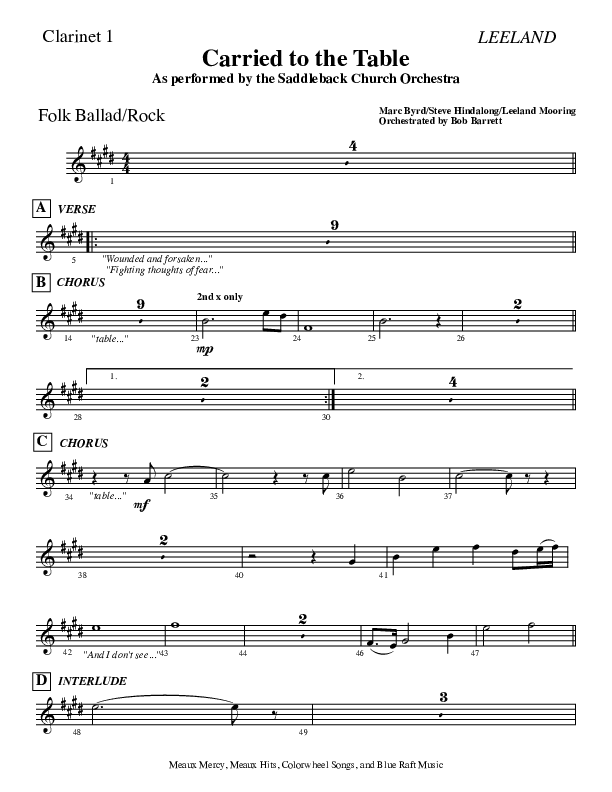 Download the Clarinet sheet music for Carried To The Table by Leeland, from the album Orchestrations By Bob Barrett.