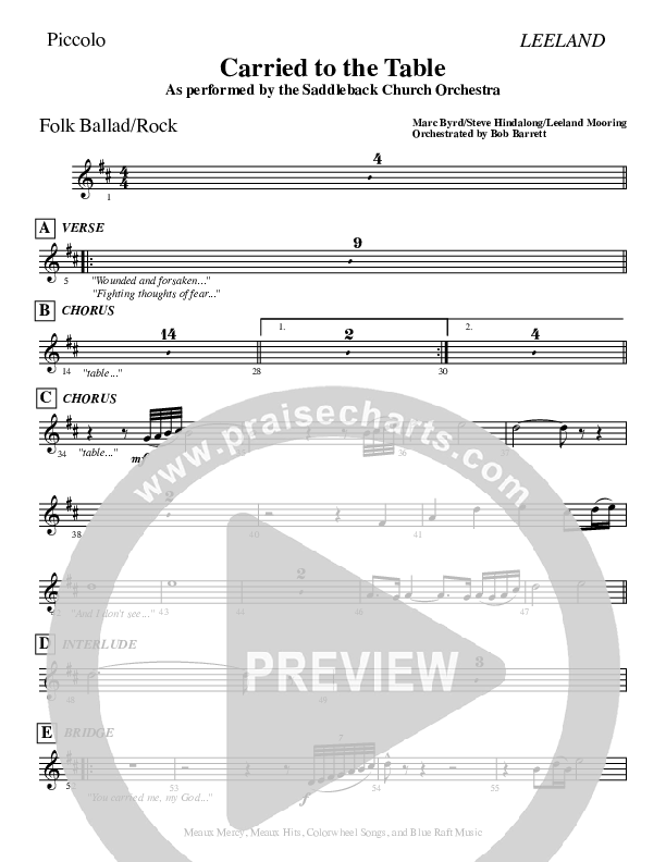 Download the Orchestration for Carried To The Table by Leeland, from the album Orchestrations By Bob Barrett.