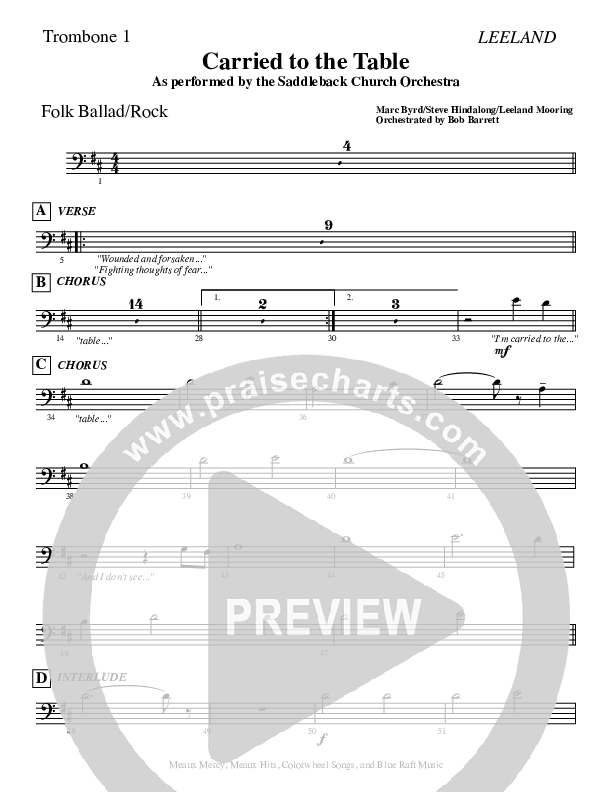 Download the Orchestration for Carried To The Table by Leeland, from the album Orchestrations By Bob Barrett.