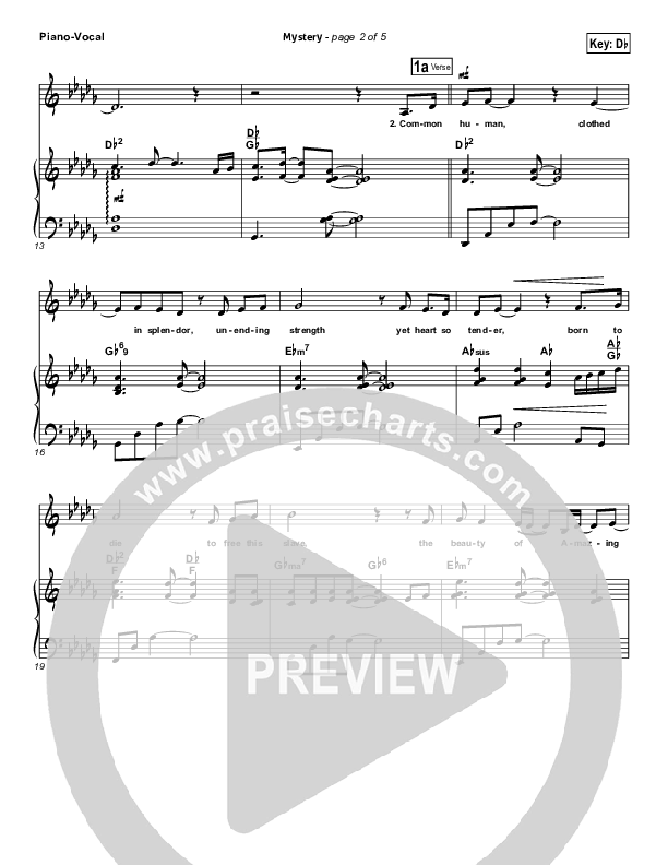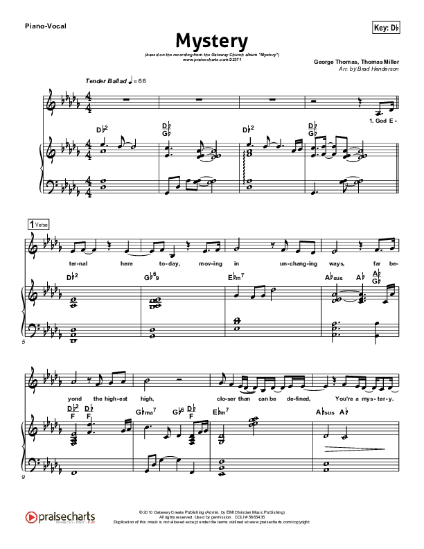 Download the sheet music for Mystery by Gateway Worship, from the album The More I Seek You. This song was arranged by Brad Henderson in the key of D, Db.