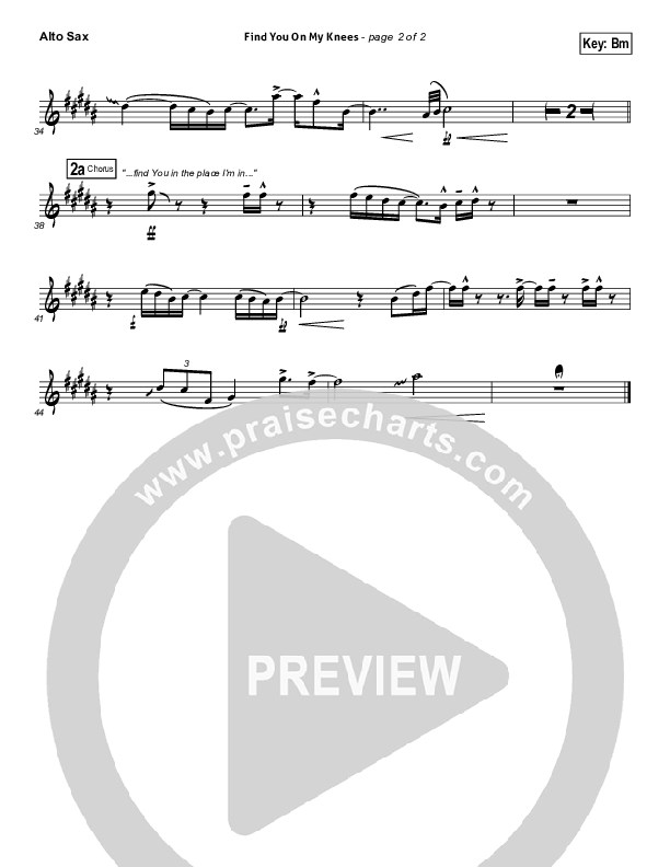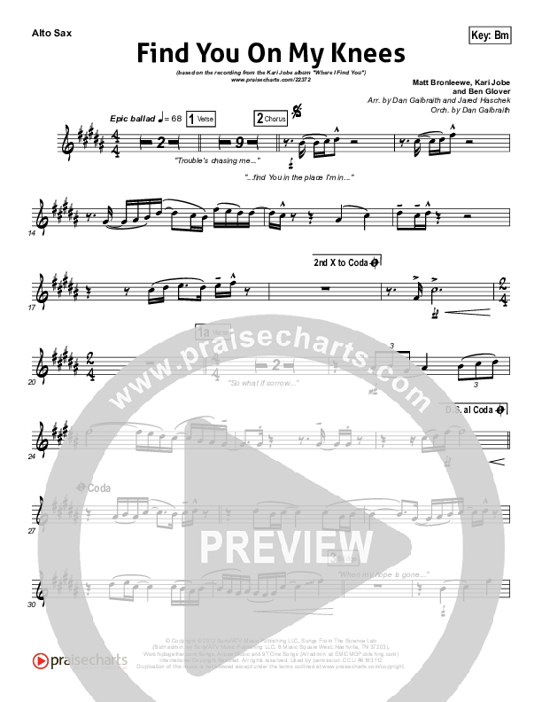 Download the AltoSax sheet music for Find You On My Knees by Kari Jobe, from the album Where I Find You. This song was arranged by Daniel Galbraith / Jared Haschek in the key of Bm, Cm.