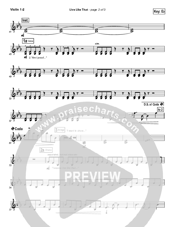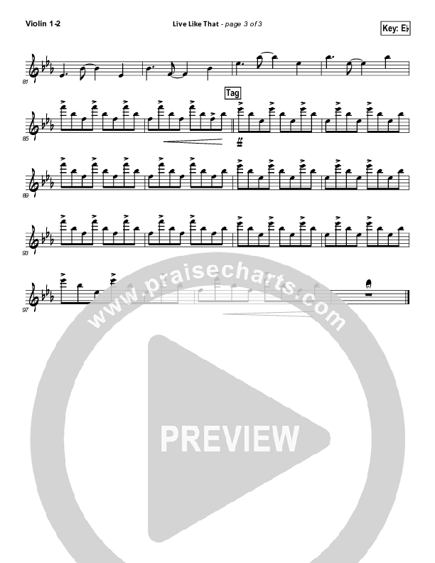 Download the Violin sheet music for Live Like That by Sidewalk Prophets, from the album Live Like That. This song was arranged by Daniel Galbraith / Lee Marcum in the key of E, Eb.