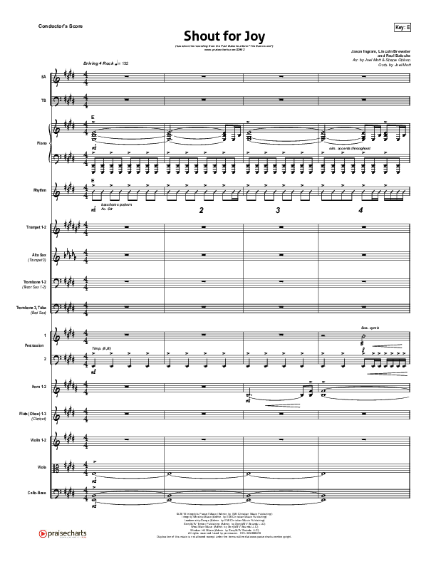 Download the Orchestration for Shout For Joy by Paul Baloche, from the album The Same Love. This song was arranged by Joel Mott / Shane Ohlson in the key of E, Eb.