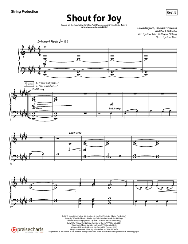 Download the Orchestration for Shout For Joy by Paul Baloche, from the album The Same Love. This song was arranged by Joel Mott / Shane Ohlson in the key of E, Eb.