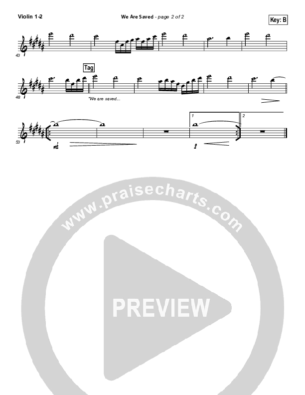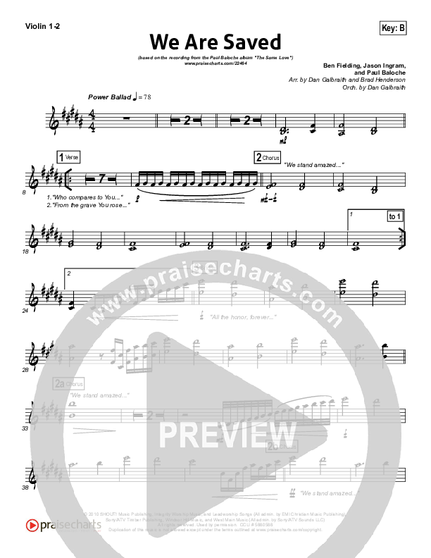 Download the Violin sheet music for We Are Saved by Paul Baloche, from the album The Same Love. This song was arranged by Daniel Galbraith in the key of B, Bb.