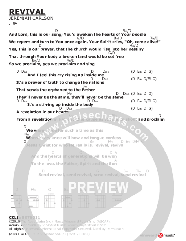Download the PDF Chord Charts for Revival by Vineyard Worship, from the album Form Us - Discover Vineyard Worship. This song was arranged by Vineyard Music in the key of D.