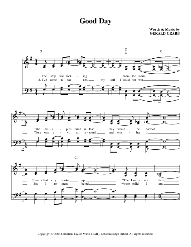 Download the sheet music for Good Day by The Crabb Family, from the album Songs From Daywind.