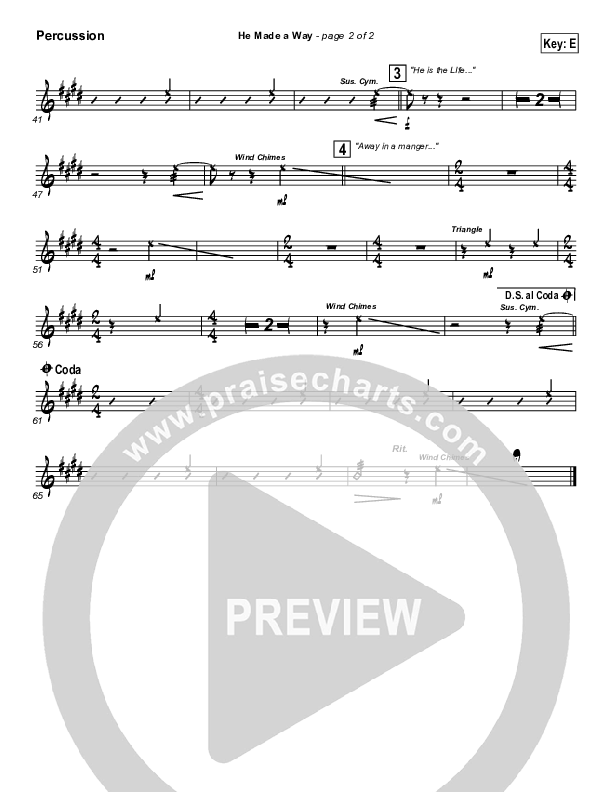 Download the percussion sheet music for He Made A Way In A Manger by Steve Merkel, from the album iWorship: A Christmas Offering. This song was arranged by David Shipps in the key of E, F.