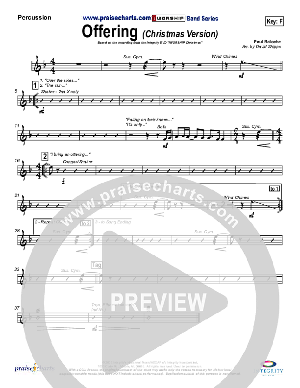 Download the percussion sheet music for Offering (Christmas) by Paul Baloche, from the album iWorship: A Christmas Offering. This song was arranged by David Shipps in the key of E, F.