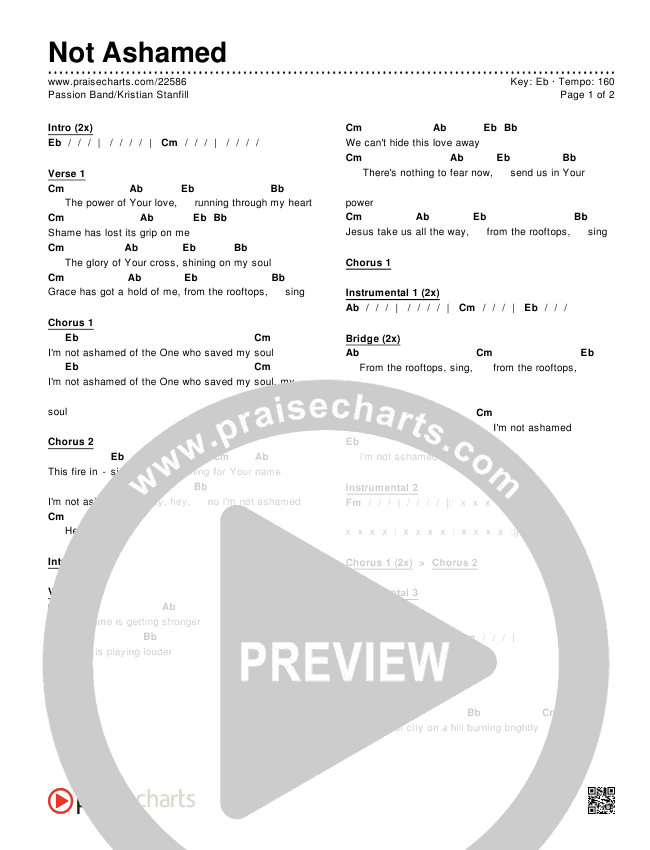 Not Ashamed Chords PDF (Passion / Kristian Stanfill)