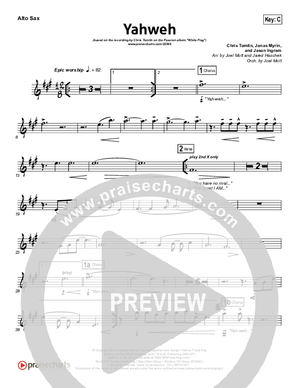 Yahweh Alto Sax Sheet Music PDF (Passion / Chris Tomlin)