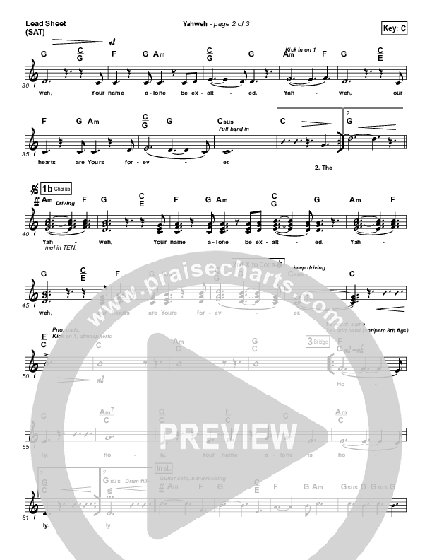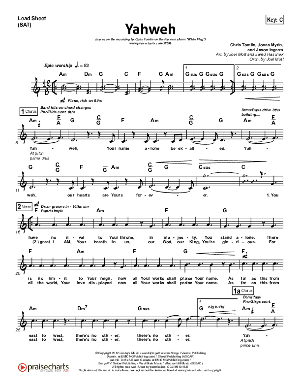 Download the sheet music for Yahweh by Passion / Chris Tomlin, from the album White Flag. This song was arranged by Joel Mott / Jared Haschek in the key of Bb, C.