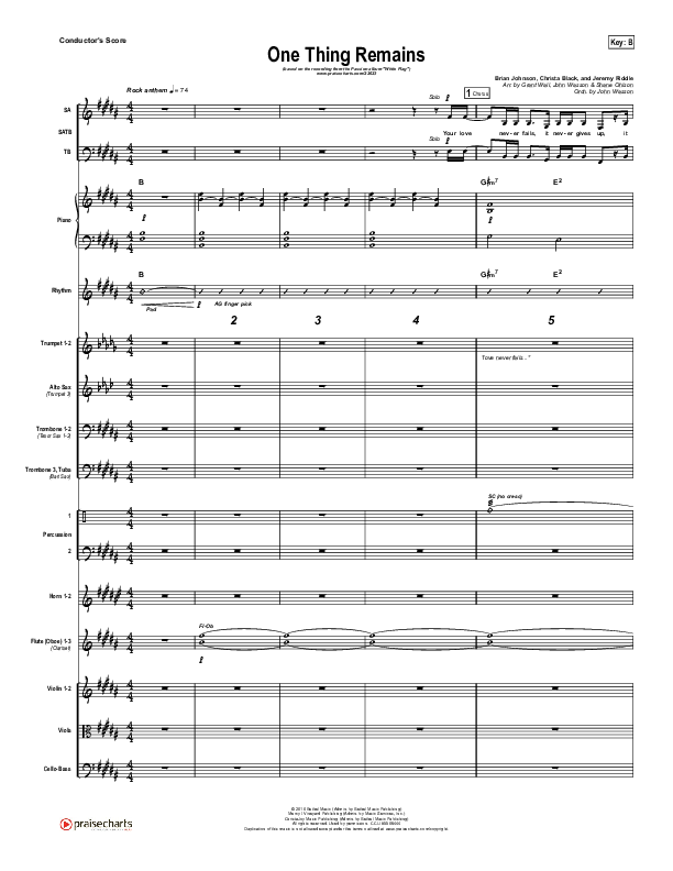 Download the Orchestration for One Thing Remains by Kristian Stanfill / Passion, from the album White Flag. This song was arranged by John Wasson / Grant Wall in the key of A, B, Bb, C, G.
