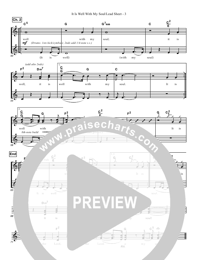 Experience timeless renditions of "It Is Well With My Soul," a hymn offering comfort and strength to countless worshipers. These popular versions bring fresh perspectives to a classic that speaks peace amidst trials. Download chord charts, lead sheets, orchestrations, and multitracks to incorporate this enduring song into worship, reminding congregations of God's steadfastness.