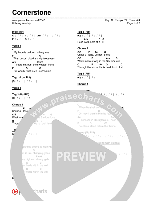 We take pride in the precision of our chord charts so that your musicians can sound like a unified band. We put the right chords over the right words, arranged in sections that follow the original recording, measure for measure. Plus, if you want to make any adjustments, you can edit them right inside the site. Your edits will be available by default any time you access the same song in the future! Musicians download our chord charts more than any other product because they are accurate, clear and editable. Here is a list of our top downloaded chord charts for your praise and worship band! Listen on Spotify.
