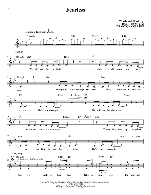 Download the Orchestration for Fearless by Travis Ryan, from the album Fearless. This song was arranged by Integrity Music in the key of Bb.