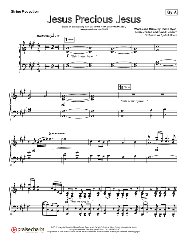 Download the Orchestration for Jesus Precious Jesus by Travis Ryan, from the album Fearless. This song was arranged by Jeff Moore in the key of A, B.
