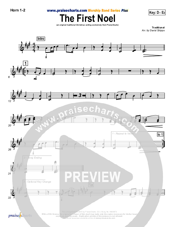 Download the Orchestration brass parts for The First Noel by PraiseCharts / Traditional Carol, from the album Traditional Carols Collection. This song was arranged by David Shipps in the key of B, D.