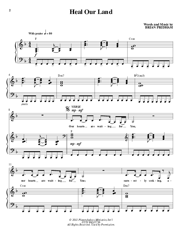 Download the sheet music for Heal Our Land by Planetshakers, from the album Heal Our Land. This song was arranged by Integrity Music in the key of F.