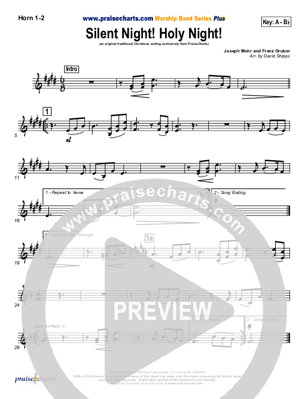 Silent Night French Horn Sheet Music PDF (Traditional Carol / PraiseCharts)