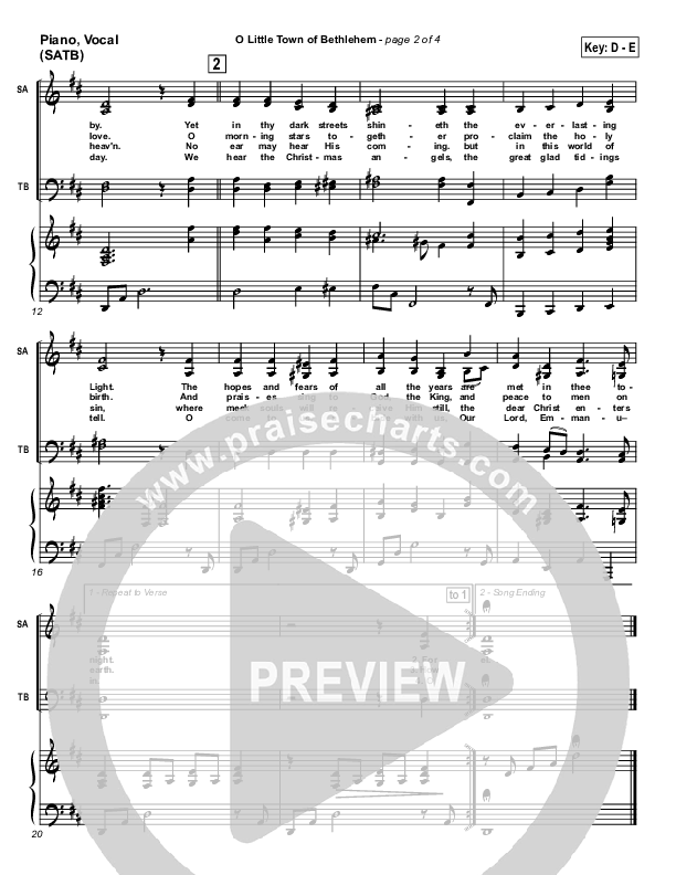O Little Town Of Bethlehem Sheet Music PDF (Traditional Carol / PraiseCharts)