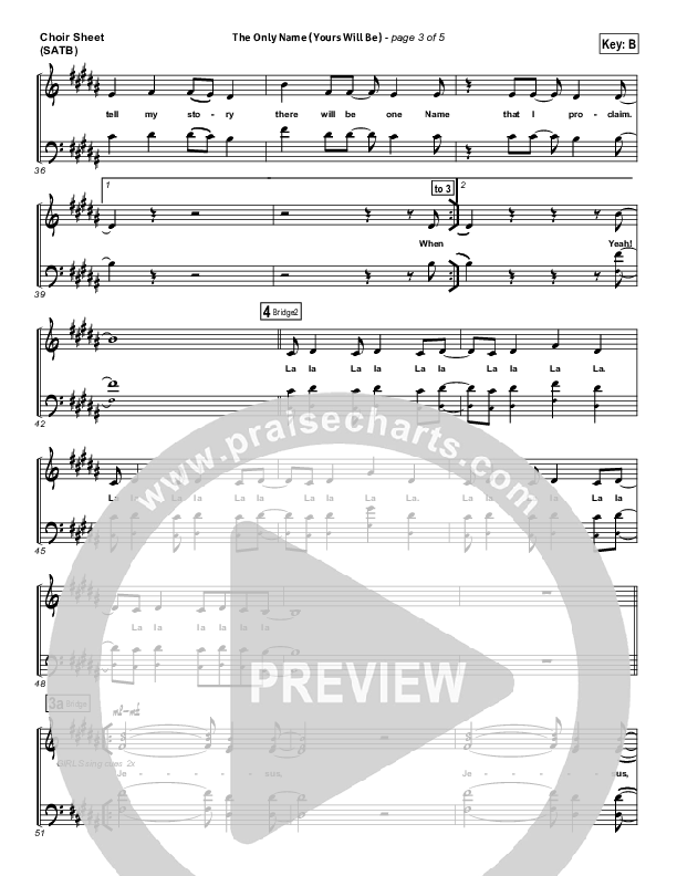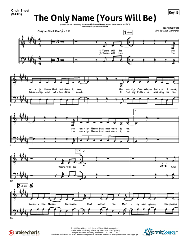 Download the Choir Sheet for The Only Name (Yours Will Be) by Big Daddy Weave, from the album Love Come To Life. This song was arranged by Daniel Galbraith in the key of B, Bb.