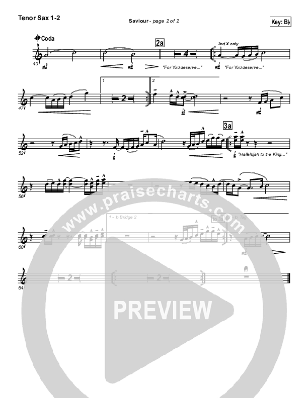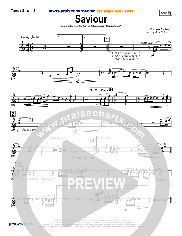 Download the Tenor Sax sheet music for Saviour by Hillsong Worship, from the album God He Reigns. This song was arranged by Daniel Galbraith in the key of Bb, C.